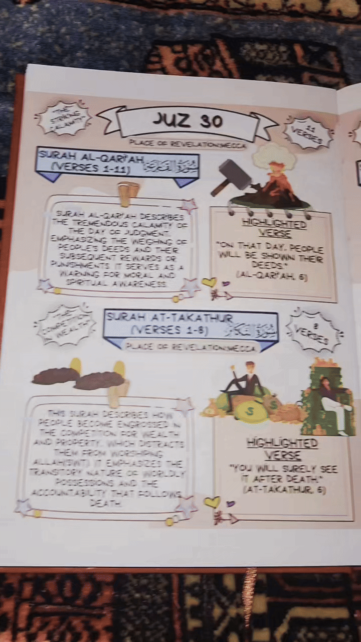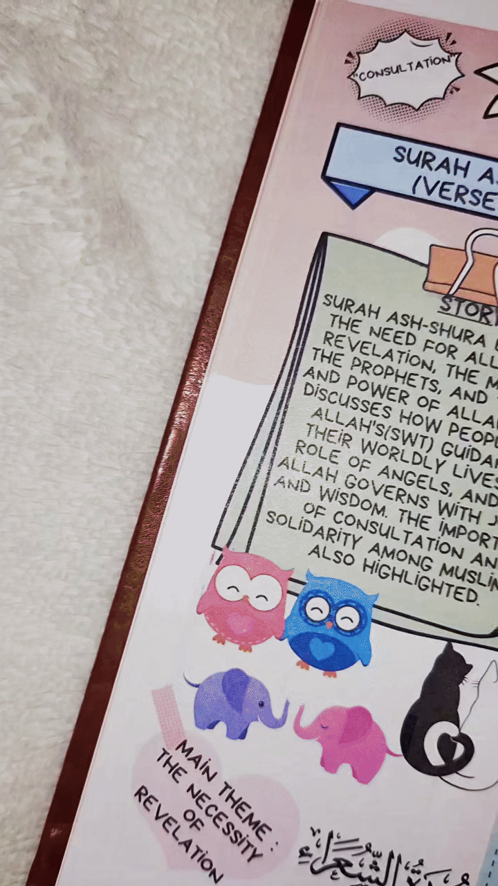 A simple, illustrated companion created to help you explore Islamic principles and grasp the meanings behind key Qur’anic verses. 📘